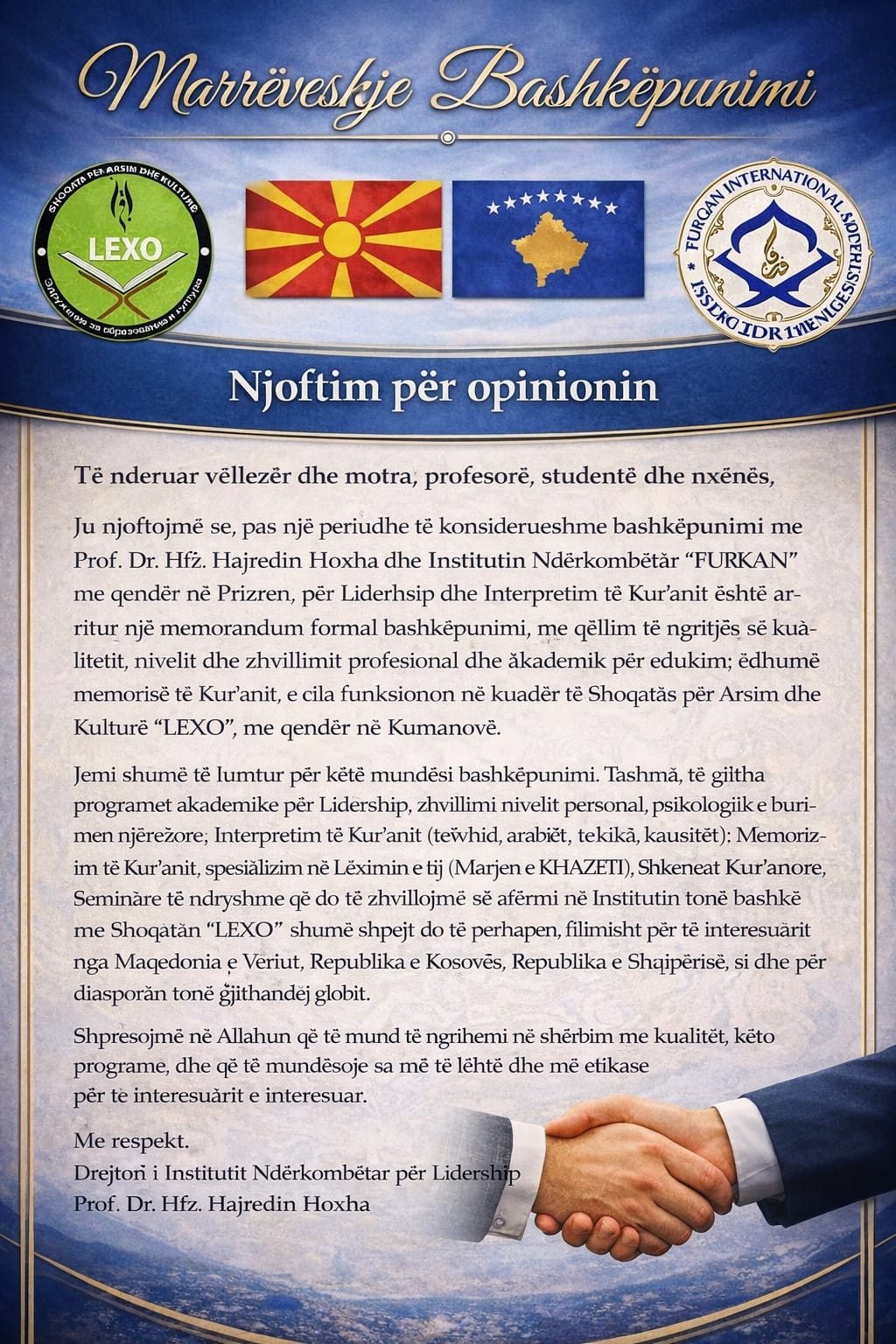 Lajme të reja Memorandum Mirëkuptimi By DrHafezi - March 27, 2026 0 100 FacebookXPinterestWhatsApp Për më shumë bëje download dokumentin MEMORANDUM MIRËKUPTIMI - Furkan & Lexo me vule (1) Hits: 19 Download